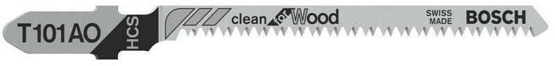 Tiszta, íves vágás - A T 101 AO Clean for Wood szúrófűrészlap fa tiszta, ívelt vágására alkalmasPrecíziósan köszörült fogazata és kúposra csiszolt lapja hibátlan ívelt vágásra alkalmasTovábbá fogainak hegyes kialakítása csökkenti a szálkásodástA magas széntartalmú acél anyagú fűrészlap puhafa és nem abrazív faipari anyagok vágásához használhatóA fűrészlap nagyon sűrű (1,4 mm) fogosztásával nagyon vékony, 1,5–15 mm vastagságú faipari anyagok vágására alkalmasT-Shank befogószáras rögzítő rendszerrel rendelkező szúrófűrészekhez használhatóMinden T befogószárú szúrófűrészhez használható