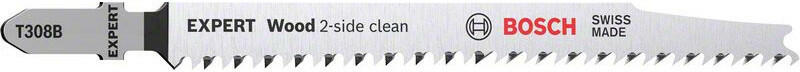 Very clean finish top and bottom - A szúrófűrésszel készített vágás „tiszta oldalának biztosítása a munkaanyag látható részén mindig is művészet volt az ácsok és asztalosok körébenNéha meg lehet fordítani a munkadarabot, máskor magát a szúrófűrészt lehet fejjel lefelé tartaniDe használhatja az EXPERT 'Wood 2-side clean' szúrófűrészlapot is, amely kétsoros fogazatának köszönhetően tökéletesen szakadásmentes vágást biztosít mindkét oldalonEzeknek a szúrófűrészlapoknak a zseniális kialakítása jóvoltából nincs szükség további munkára a vágás után – sem a fel-, sem a lefelé irányuló löketeknél nem szakítanakEz tökéletes azon szakembereknek, akik időt szeretnének megtakarítani, miközben ügyfeleik számára a legmagasabb színvonalú munkát kívánják biztosítaniExtra éles, precíziós csiszolású fogaival a Bosch EXPERT 'Wood 2-side clean' szúrófűrészlap kiválóan alkalmas akár 50 mm vastag puhafa vágásáraA szekrénykészítők tökéletes felületet érhetnek el, és nem veszítenek időt a csiszolással a szúrófűrésszel végzett minden egyes vágás utánKapható egyenes vágásokhoz (T308B), íves vágásokhoz (T308BO) és pontos szögű vágásokhoz (T308BP) Minden T befogószárú szúrófűrészhez használható