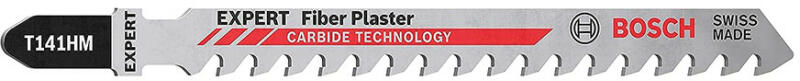 Carbide Technology a hosszú élettartam érdekében - A kemény anyagokhoz szívós szúrófűrészlapra van szükség – de ugyanez kell a jó vágáshoz is. Az elhasználódott fűrészlap már nem végez jó munkát, ezért a hosszú élettartam és a minőség az EXPERT 'Fiber Plaster' sajátja. Keményfém fogai a csiszoló hatású legkeményebb anyagokat is vágják, így például a cementkötésű farostlemezt, a gipszkartont és az üvegszál erősítésű műanyagot. Csak vág és vág, maximális termelékenységgel. A Bosch EXPERT 'Fiber Plaster' szúrófűrészlap minőségét és rendkívüli tartósságát a Bosch Carbide Technology biztosítja. A legkeményebb fémből csiszolt különálló fogakat fejlett gyártási technikákkal hegesztik a lapra. A Bosch EXPERT 'Fiber Plaster' szúrófűrészlappal ismételt vágások végezhetők a leginkább koptató hatású anyagokban is. Ez a legjobb választás azon szakembereknek, akiknek olyan nehéz munkákkal kell megbirkózniuk, mint a gipszkartonszerelés, ráadásul kétféle hosszúságban kapható: a T141HM a maximális irányítás érdekében rövidebb, a T341HM pedig a jobb elérés biztosításához hosszabb. Minden T befogószárú szúrófűrészhez használható