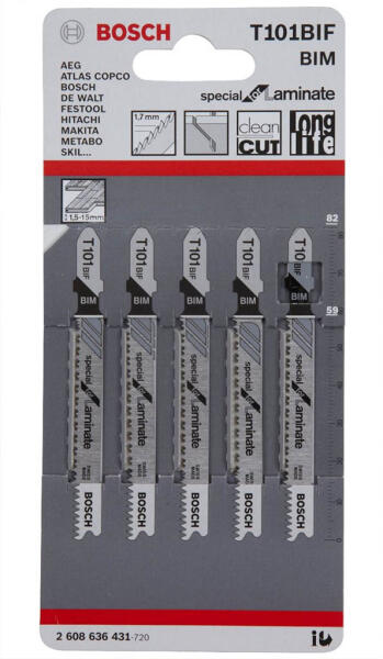 Paraméterek, termékleírás - Bosch PRO Laminate clean T101BIF szúrófűrészlap, 83 mm, 5 db 2608636431 (2608636431)