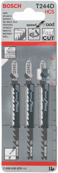 A T 244 D Speed for Wood szúrófűrészlap fa gyors, ívelt vágására alkalmas Élesre köszörült váltófogazata gyors vágást tesz lehetővé A keskeny fűrészlapot ívelt vágáshoz optimalizálták Minden T befogószárú szúrófűrészhez használható.