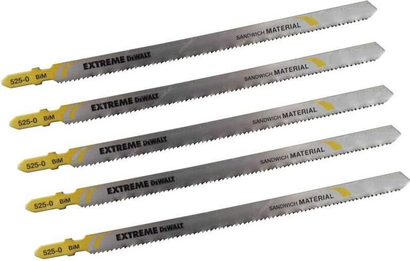 Jellemzők: Az EXTREME DEWALT dekopírfűrészlapok rendkívül finom vágási felületet és pontos vágást biztosítanak hosszú élettartamuk mellett. Rendkívül pontos vágás: 50%-kal erősebb fűrészlaptest csökkenti a törésveszélyt és elmozdulást. Maximális élettartam: Megerősített fogkiképzés nagyobb pontosságot és hosszabb élettartamot biztosít. Egyenes és íves vágások szendvicsanyagokban (120 mm-ig) és közepes vastagságú acéllemezekben