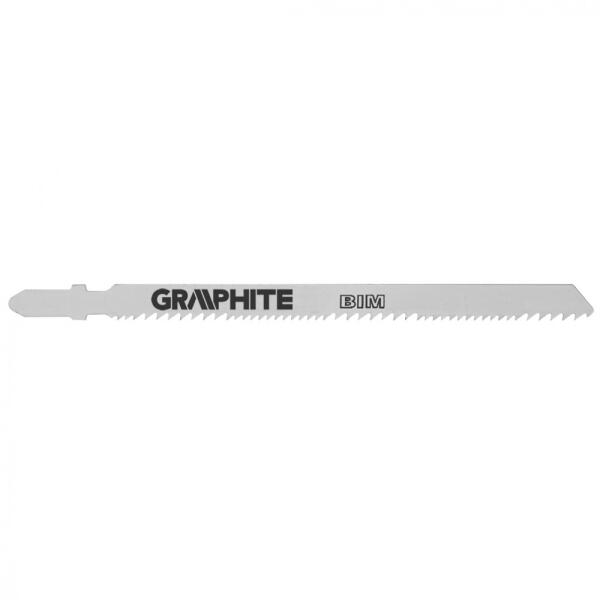 GRAPHITE szúrófűrész pengék fa és műanyag közepesen pontos vágásához. A T befogás alkalmazhatóvá teszi a pengét az összes Bosch típusú vagy univerzális befogással szerelt szúrófűrészben. A CrV (króm-vanádium) acél a pengéknek nagy rugalmasságot és hőmérséklet-állóságot kölcsönöz. A penge csiszolt oldalfelületei csökkentik a súrlódást és a penge felmelegedését fűrészelés közben.