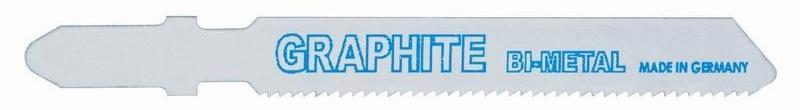 GRAPHITE szúrófűrész pengék fa és műanyag közepesen pontos vágásához. A T befogás alkalmazhatóvá teszi a pengét az összes Bosch típusú vagy univerzális befogással szerelt szúrófűrészben. A CrV (króm-vanádium) acél a pengéknek nagy rugalmasságot és hőmérséklet-állóságot kölcsönöz. A penge csiszolt oldalfelületei csökkentik a súrlódást és a penge felmelegedését fűrészelés közben.