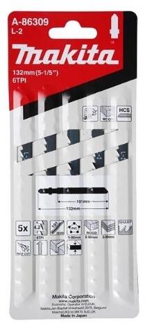 Makita Szúrófűrészlap fára L132 mm Z6 L-2 (5db/csom) (A-86309)