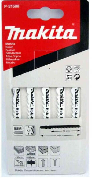 Makita szúrófűrészlap fára, 5 db-os szett P-31588 A Bi-metal orrfűrészlap (HCS + HSS) szénacél és gyors acél ötvözetből készül.